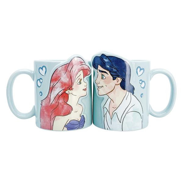 Sea green mugs with Ariel and Eric from the Little Mermaid staring into each other's eyes. The reverse shows a silhouette of Ariel and Prince Eric dancing.
