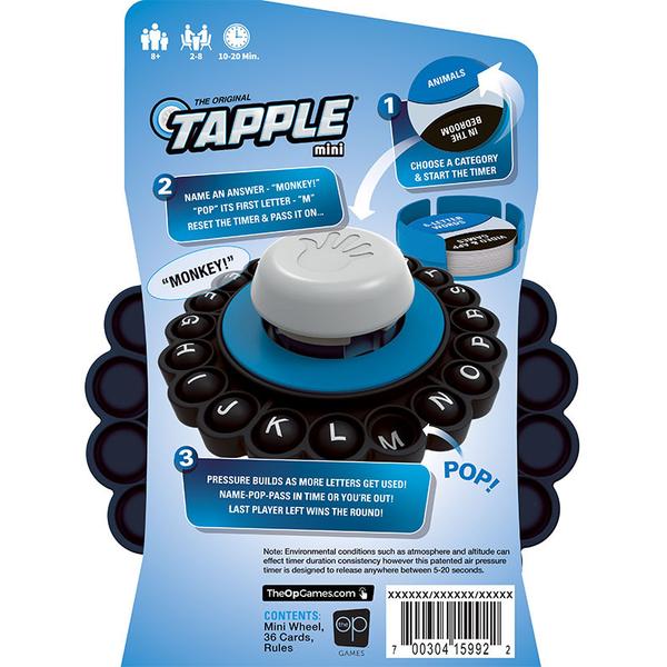 The #1 viral party game … to go! Tapple® Mini is the portable version of the award-winning, fast-paced word game that has sold millions of copies worldwide! Small in size but big in fun, Tapple® Mini is the perfect game to play on the go or bring on your next trip.